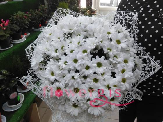 Композиция из ромашек –очень милый знак внимания для любого вами человека .Ромашки дарят не только любимой для проявления чувств и нужности , но и просто значимым людям , коллеге или жене. Ну а белые ромашки разбавят любое настроение и оставят лишь позитивные эмоции от прекрасных цветов .